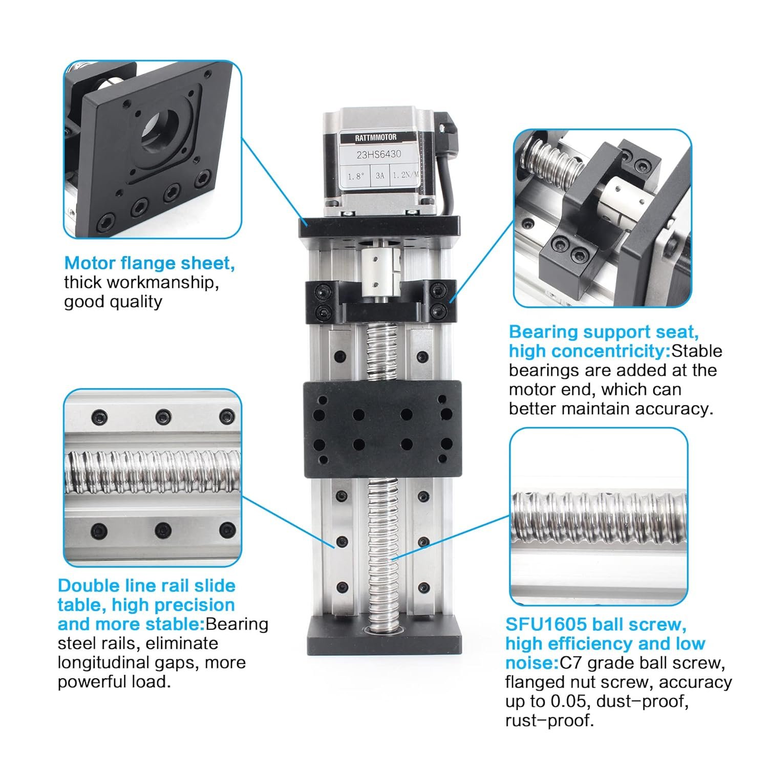 – Tipo: doble riel lineal con husillo de bolas 1605